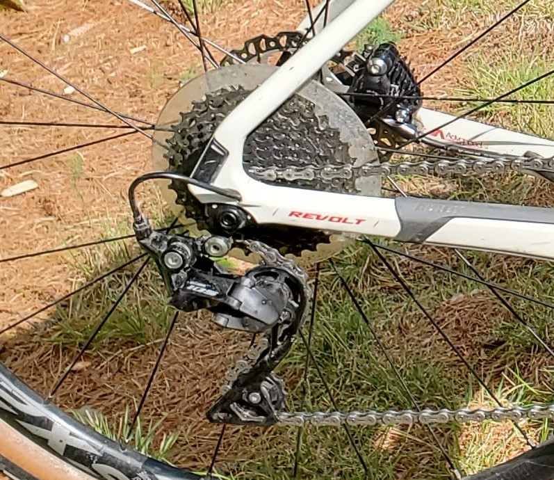 I love my 2020 Giant Revolt 2 gravel bike but found myself wishing for easier gearing when climbing steep hills, especially when fully loaded on bikepacking trips such as the BT700. My Giant Revolt came with Shimano 105 shifters, rear derailleur, 11×34 cassette and 32/48 crankset. What I wanted was my mountain bike’s Shimano XT rear derailleur with a 11×42 cassette.
