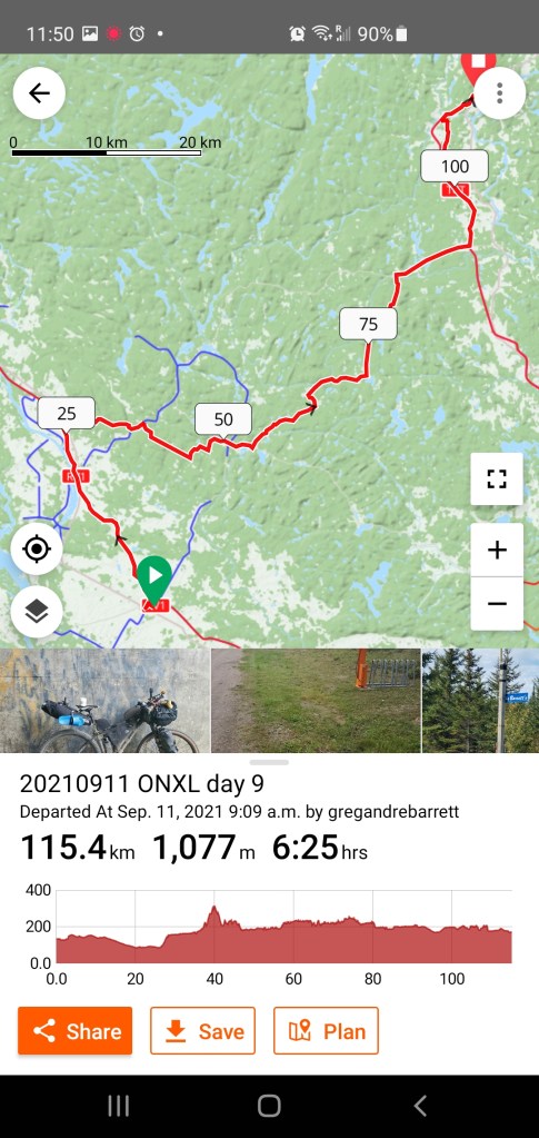 Left Shawville 10am after sleeping in, having a huge breakfast and buying flip flops as I lost mine two days ago. My goal was Gracefield 128k and sleeping in a tepee at a private campground.