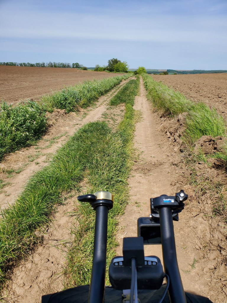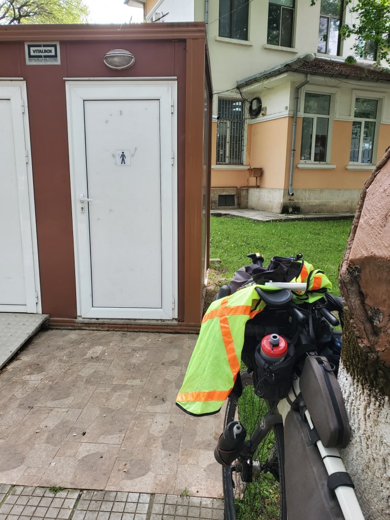 Soon I was away from the busy streets and the day looked promising…except for the strong constant easterly headwind (see the video clip of some plastic blowing in the wind). The many small villages seemed better off than on previous days. One even had a central park with toilets, just when I needed one. The last 40 km was on back country rough pave and dirt roads through fields. With only about 25 km to go the trail became so overgrown it disappeared. I stopped a guy on a motorcycle to ask about the trail. He said that the trail wasn’t usable anymore as it got too overgrown and was too muddy when it rained. Besides adding at least 40 km there was no option but to bushwack 5 km to the next village and paved road. The path was badly rutted and overgrown with bushed/trees that had huge thorns. At the end there was a very steep long push a bike section.Thankfully the rest of the route to Silistra was smooth riding.