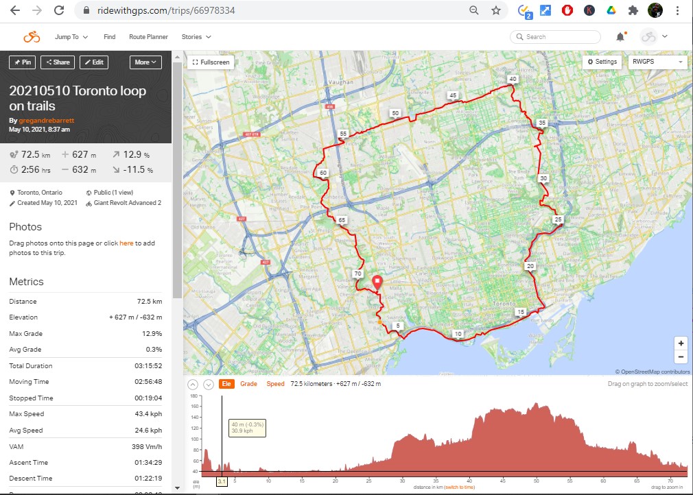 This cycling route is one of my local favourites and illustrates why Toronto is consistently rated one of the top cities to live in the world. About 67k (93%) of 72k of this route is on paved trails...primarily the Humber River Trail, Waterfront Trail, Don River Trail and the Finch Corridor Trail. Spinning along these … Continue reading Toronto loop ride on beautiful serene trails of 72kms